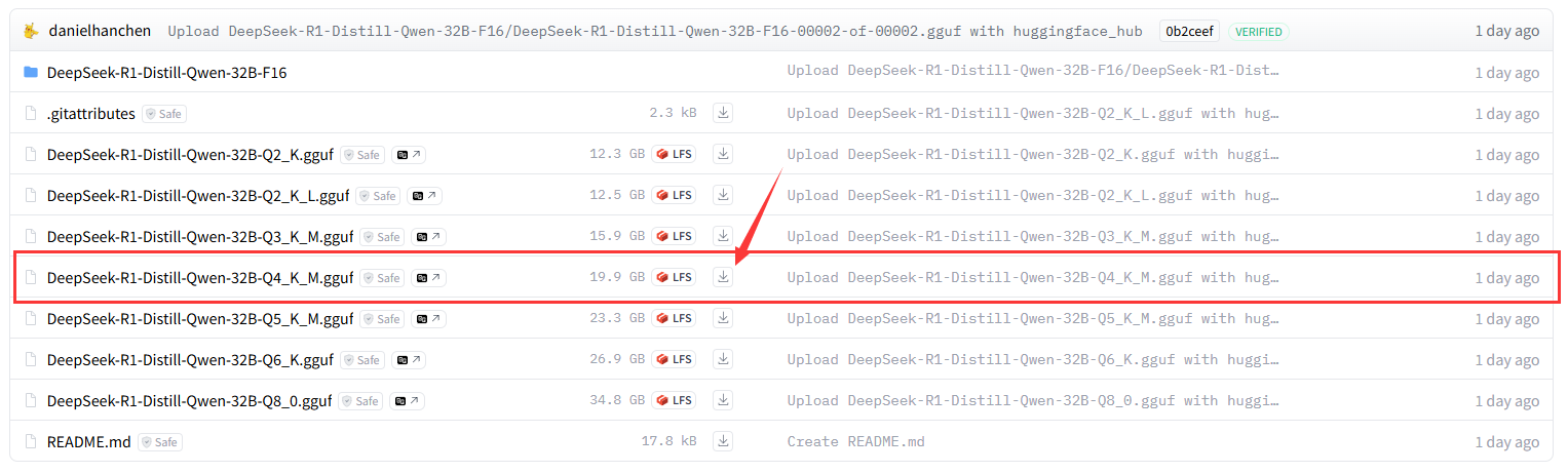 下载地址 https://huggingface.co/unsloth/DeepSeek-R1-Distill-Qwen-32B-GGUF/tree/main